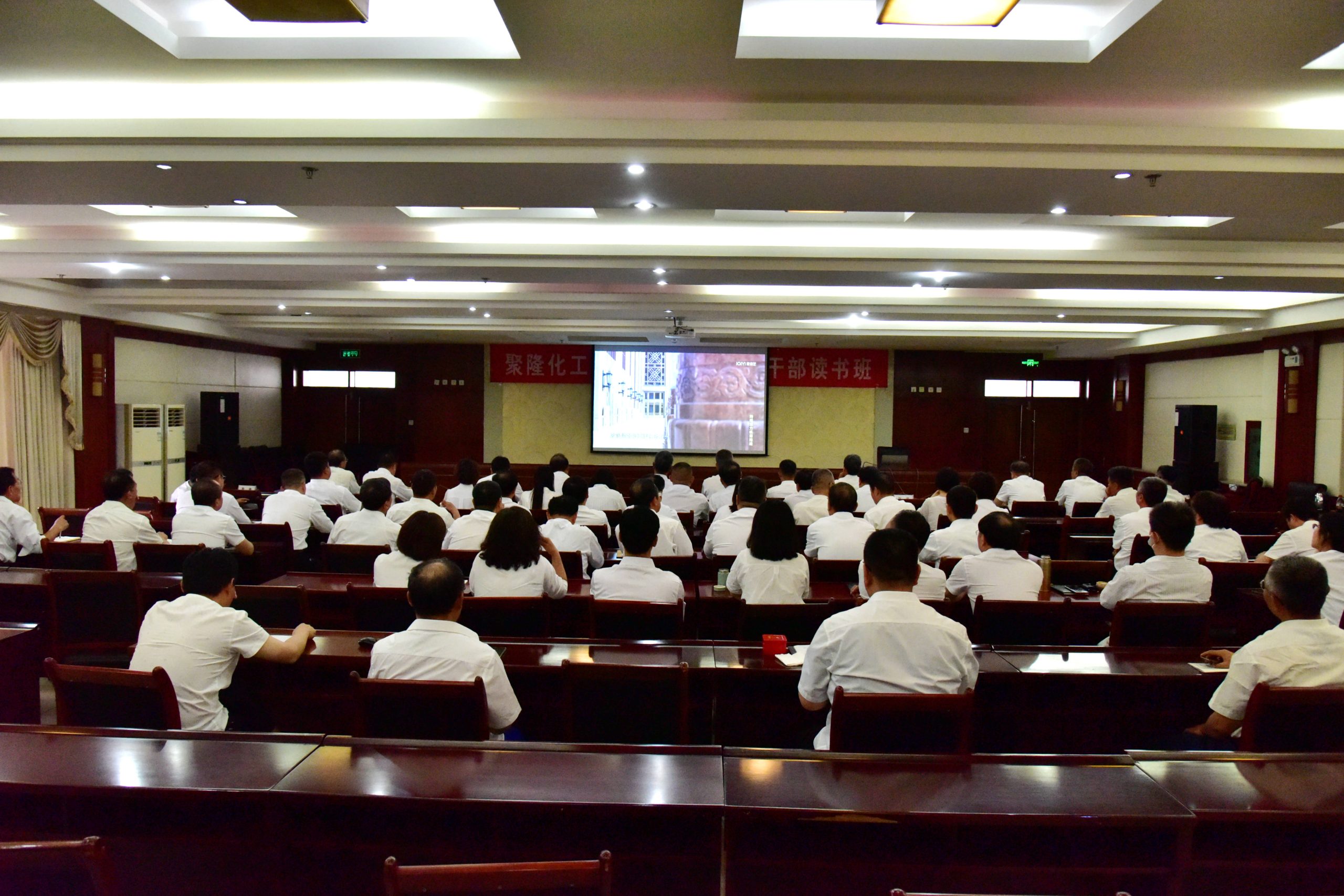 聚隆化工領(lǐng)導(dǎo)班子、各廠部黨政正職及關(guān)鍵崗位負責(zé)人60余人參加讀書班活動。(文/劉建業(yè)? 圖/龔海林)